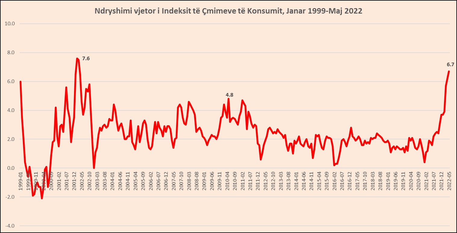 Ndryshimi mujor i indeksit të çmimeve të konsumit në muajin maj 2022, krahasuar me Prill 2022 është -0,5%.