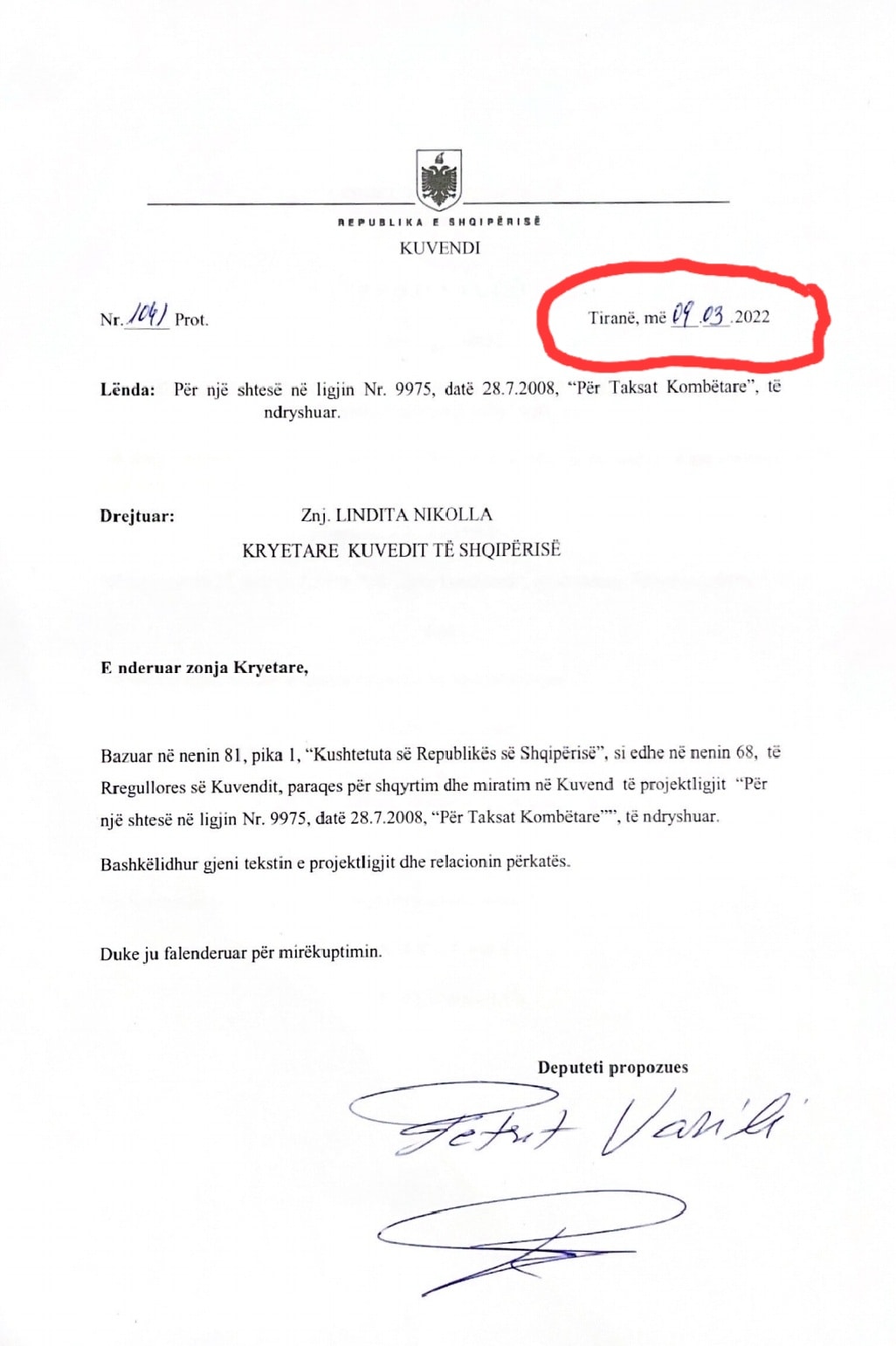 “Kam paraqitur që në 9 Mars 2022 projektligjin për uljen e çmimit të naftës.