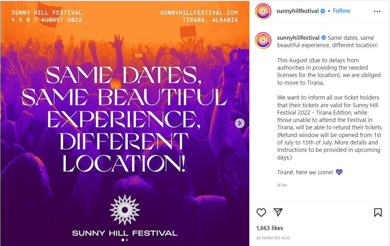 Më pas në faqen zyrtare të festivalit u konfirmua se ky organizim është zhvendosur në Tiranë.
