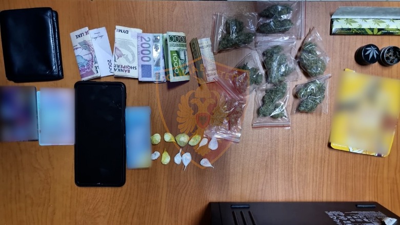Në pranga ka rënë 29-vjeçari me iniciale F.M. pasi gjatë kontrollit fizik, i janë gjetur disa doza kokainë e kanabis të ndara në doza gati për shitje.