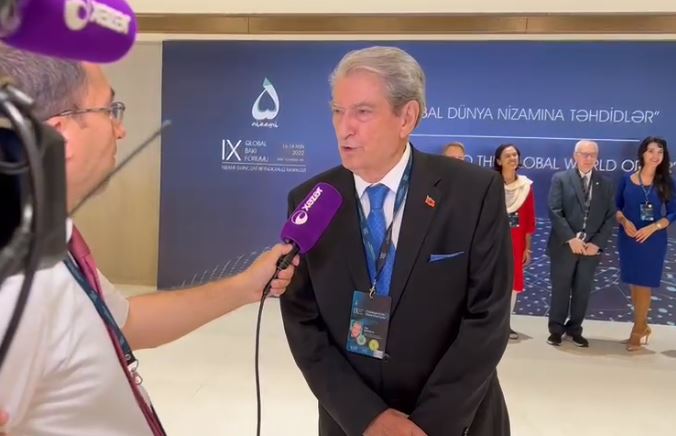 “Kënaqësi të marr pjesë dhe të përshëndes sot Forumin IX Global të Bakusë ‘Rezistenca globale, bashkëpunimi global’, platformë unike e personaliteteve të dalluara nga të gjithë sektorët e qeverisjes, jetës politike dhe shoqërore në botë, të organizuar nga Qendra Ndërkombëtare ‘Nizami Ganjavi’.