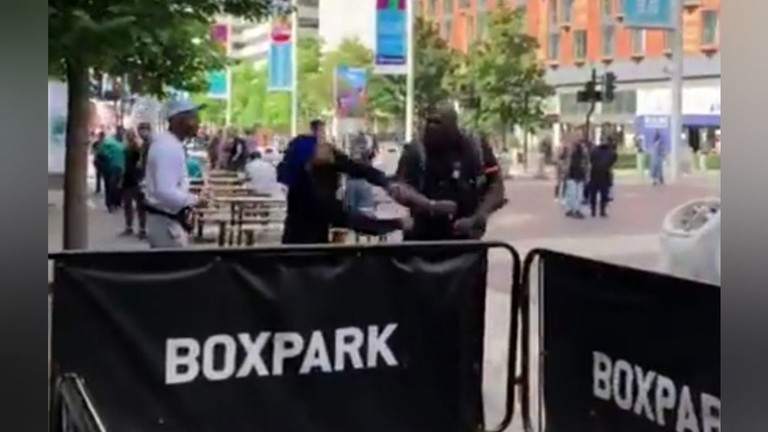 Pamjet tregojnë Francis dhe disa nga kolegët e tij punonjës që përpiqen të qetësojnë një person në hyrje të një parku ushqimesh dhe shitjesh me pakicë të njohur si BoxPark në Londrën Veriore, por një burrë duket të jetë veçanërisht i inatosur ndërsa shtyn dhe fyen punonjës të ndryshëm.