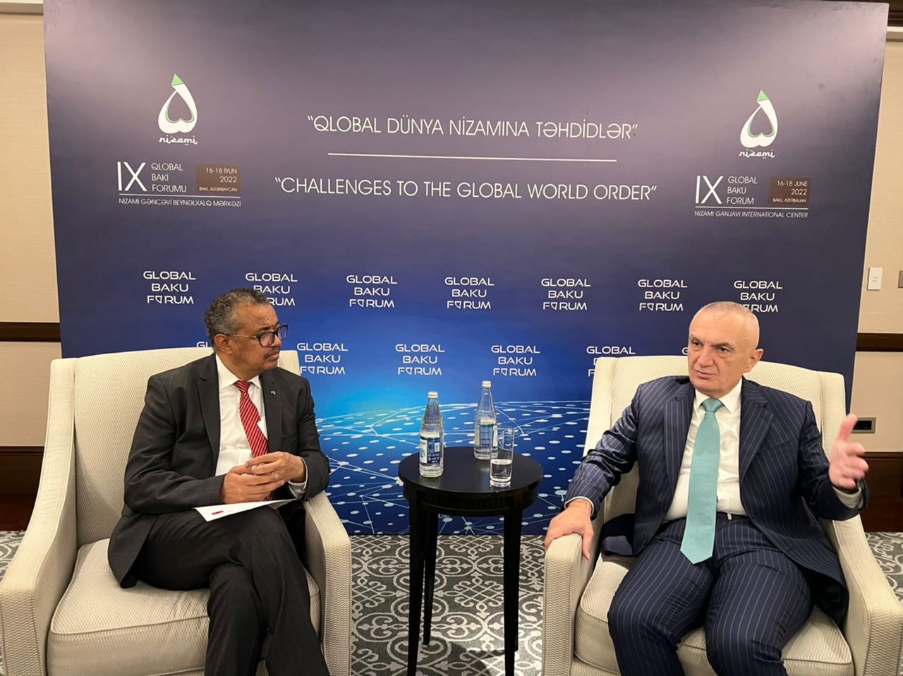 “Në kuadër të punimeve të Forumit IX Global të Bakusë, pata kënaqësinë e veçantë të takoja Drejtorin e Përgjithshëm të Organizatës Botërore të Shëndetësisë, Dr. Tedros Adhanom Ghebreyesus , të cilit i urova shumë suksese për rizgjedhjen për një mandat tjetër 5-vjeçar në këtë detyrë shumë të rëndësishme.