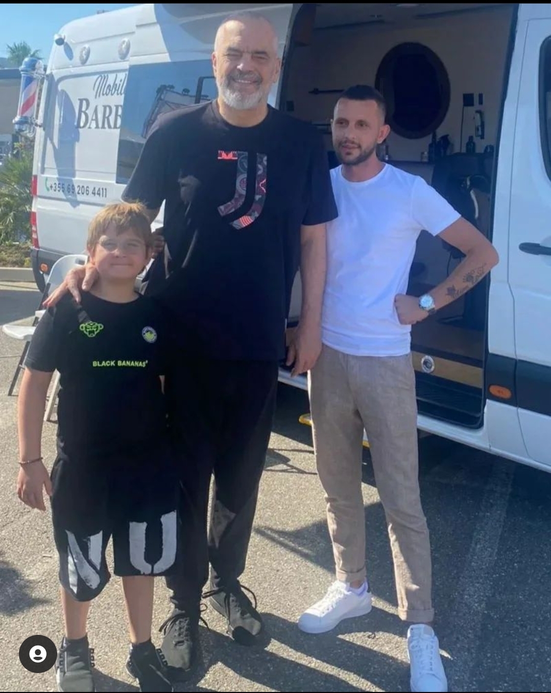Në foto shihet edhe Edi Rama me djalin e tij të vogël që kanë pozuar me berberanën e lëvizshme.