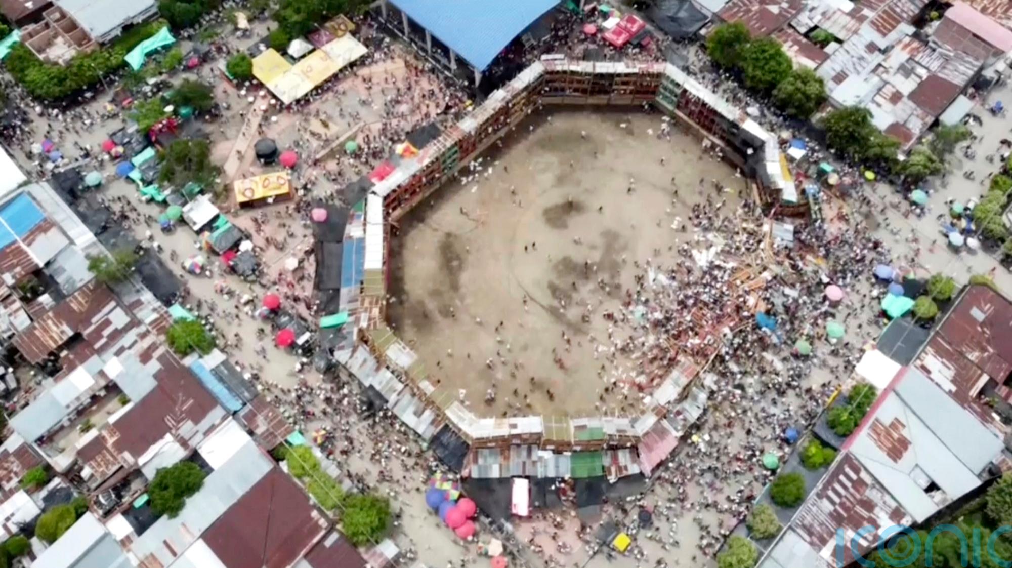 Pesë persona kanë humbur jetën dhe të paktën 60 persona janë plagosur pasi një stadium prej druri për ndeshjet me dema u shemb të dielën në El Espinal, Kolumbi. Mes masakrës, një dem u arratis në rrugët e qytetit.