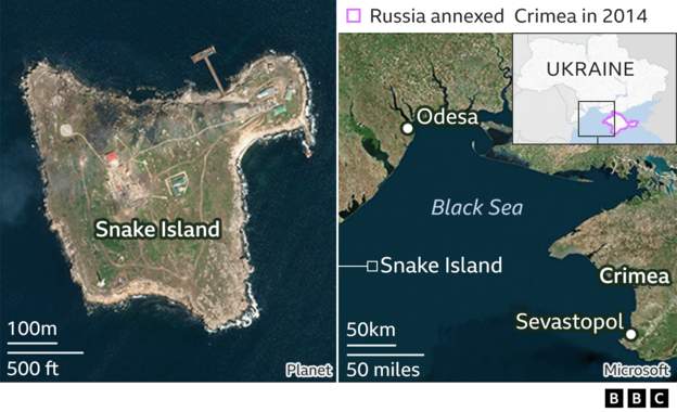 Siç shkruan BBC, Moska dëshiron që ne të besojmë se nuk ka pasur tërheqje ruse nga ishulli i gjarpërinjve. Ministria ruse e Mbrojtjes pretendon se trupat ruse atje thjesht kishin përfunduar “detyrat e caktuara” dhe u larguan.