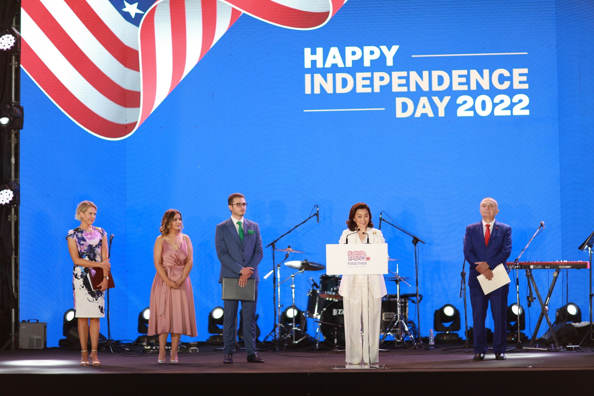 “Teksa mendojmë për 100-vjetorin e marrëdhënieve SHBA-Shqipëri këtë vit dhe 30-vjetorin e përfundimit të komunizmit, le t’i kujtojmë njëri-tjetrit rolin dhe përgjegjësinë solemne që të gjithë ne këtu kemi për të çmuar, ruajtur, mbrojtur, forcuar, dhe bashkëndarë demokracinë – demokracinë për të cilën secili nga popujt tanë – amerikanë dhe shqiptarë – kanë luftuar aq shumë. Unë shpresoj se do të vazhdojmë t’a nxisim njëri-tjetrin për ta kapur historinë, për ta jetuar dhe për t’i dhënë formë historisë sonë në mënyrën veprore – në Shtetet e Bashkuara dhe Shqipëri. Gëzuar! Edhe një qind!”– është shprehur ambasadorja.