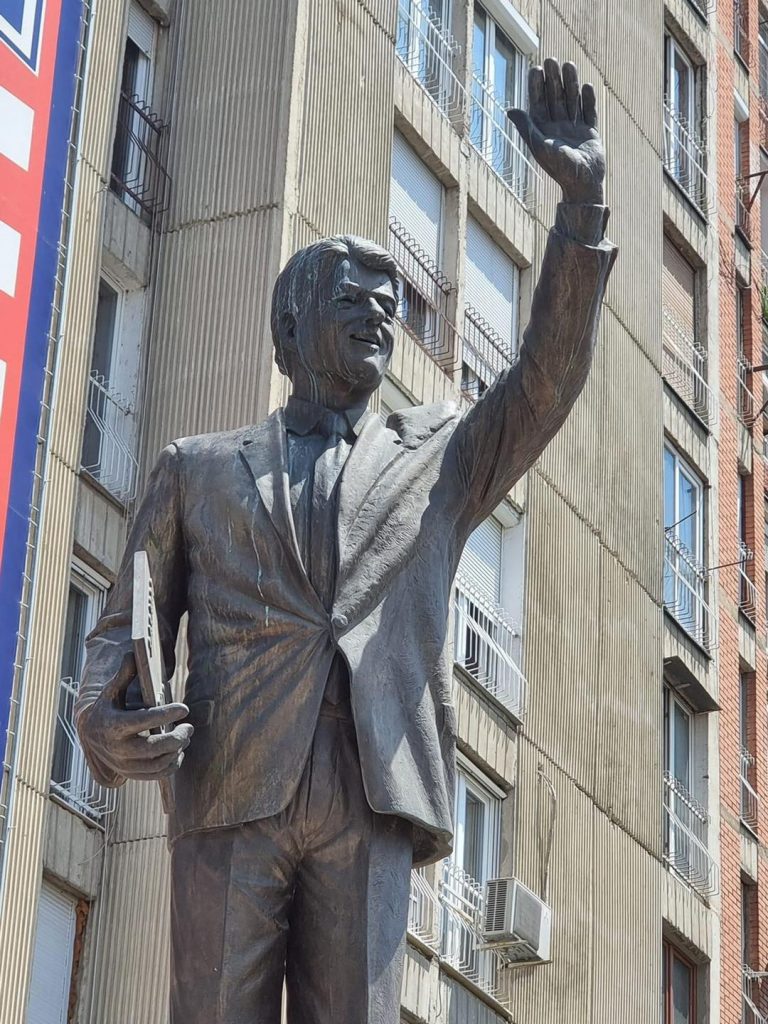 Statuja e ish-presidentit amerikan, Bill Clintonin në Prishtinë është mbuluar nga glasat e zogjve.