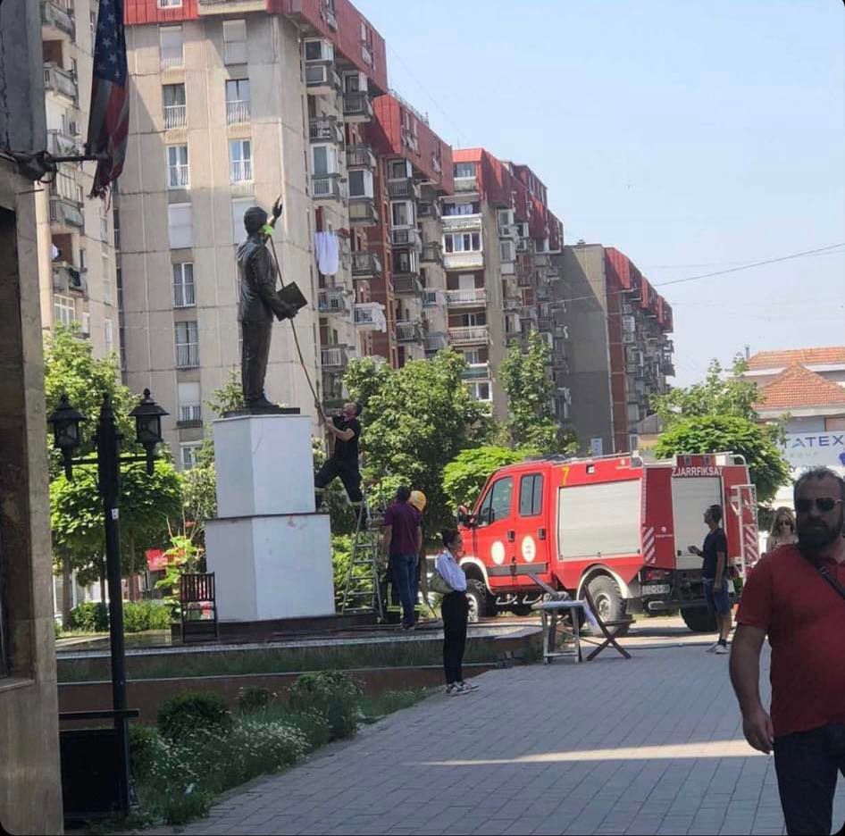 Pas këtij denoncimi në rrjetet, duket se bashkia ka vepruar pasi punonjës të Zjarrfikëses janë parë duke e pastruar më në fund statujën e ish-presidentit amerikan që bëri të mundur çlirimin e Kosovës nga Serbia.