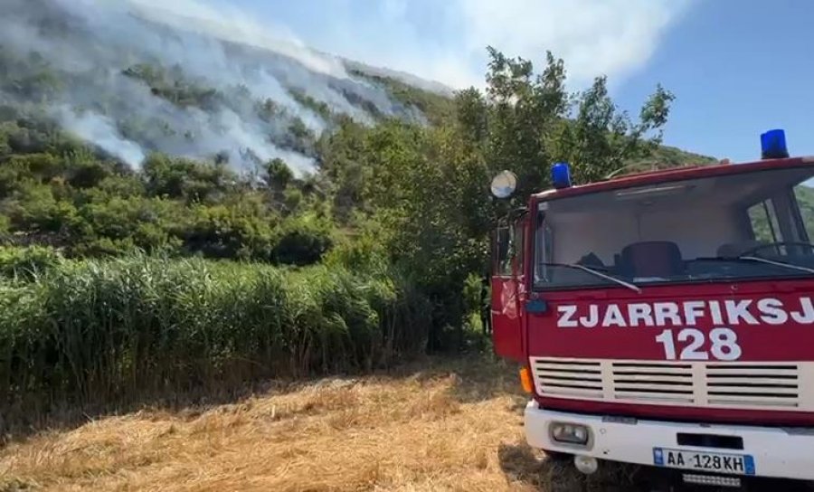 Zjarri po përhapet me përmasa të mëdha ndikuar edhe nga era që fryn.