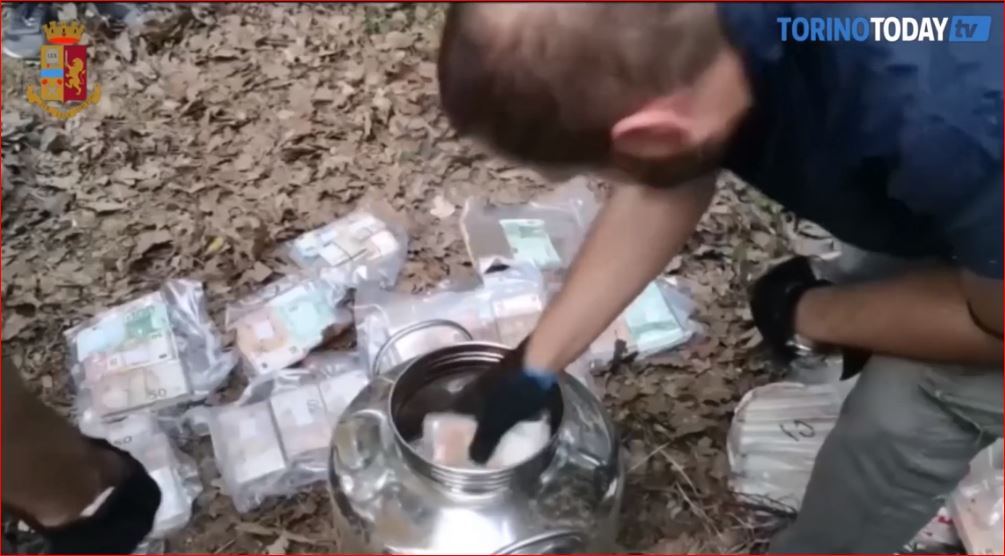 Në Torino janë zbuluar disa mijëra euro të fshehura në kazanë të mëdhenj prej hekuri, që ishin groposur në oborret e shtëpive të bosave që i posedonin. Ky është rezultati pas një aksioni të Antimafia italiane kundër organizatës mafioze të Ndranghetas.