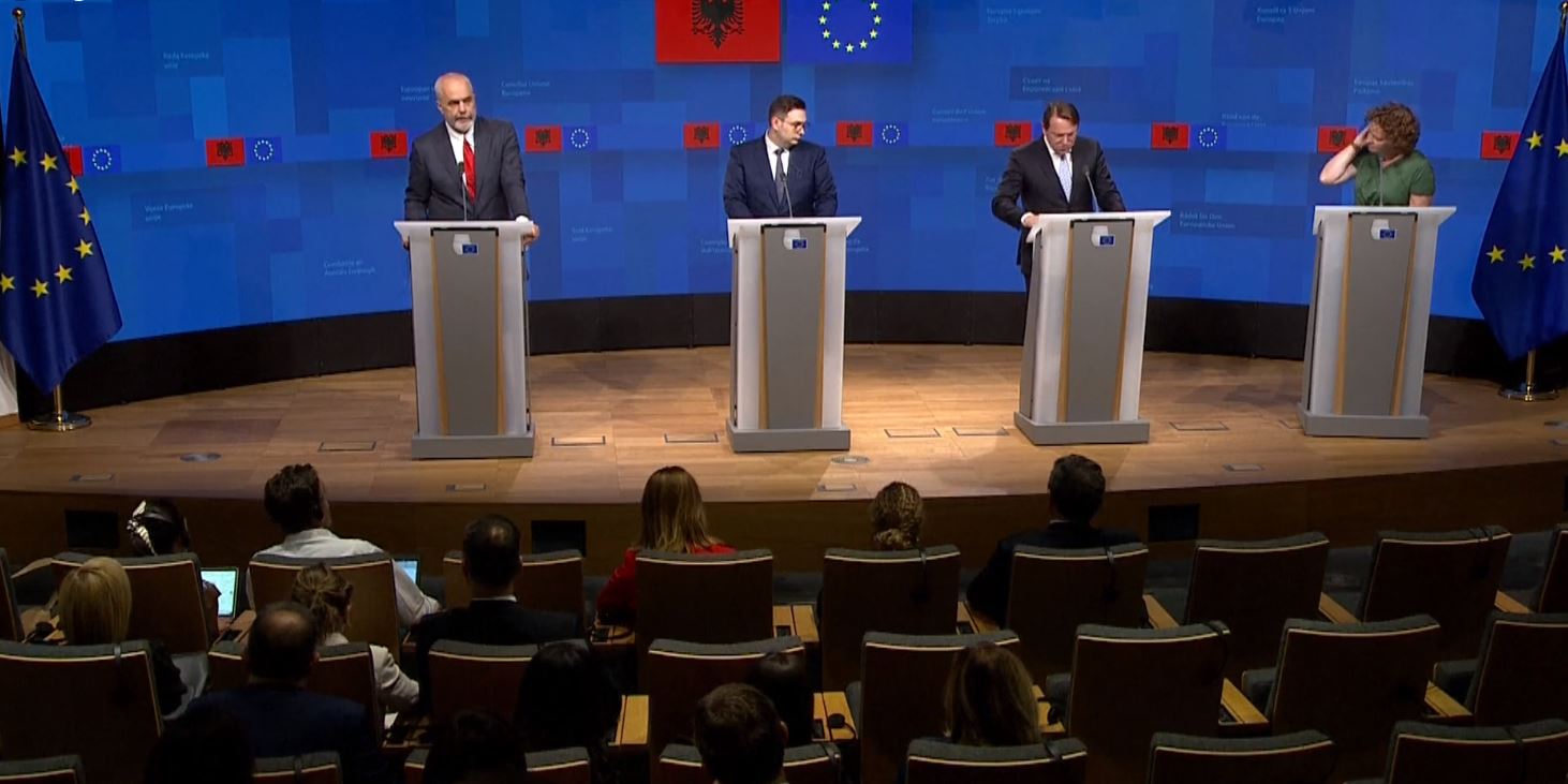 Historike e kanë quajtur datën e sotme si kryeministri Rama e presidenti Meta ashtu edhe zyrtarët europianë që morën pjesë në konferencën e parë ndërqeveritare mes Brukselit nga njëra anë e Tiranës e Shkupit nga ana tjetër.