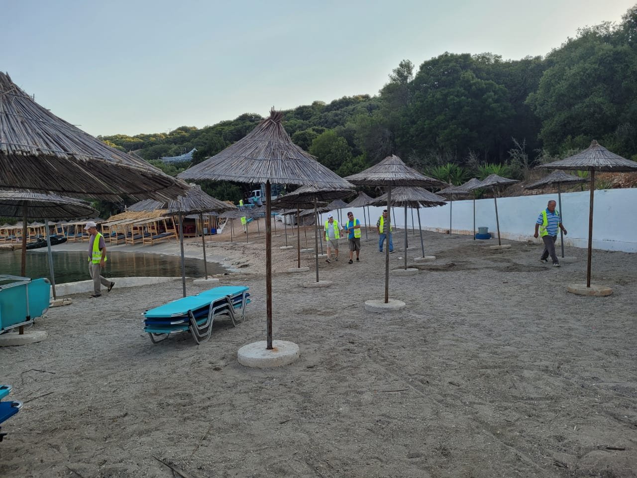 Policia ka sekuestruar mbi 300 shezlonë në zonën e Pemës së Thatë në Ksamil.