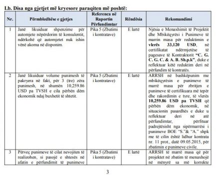 Sipas KLSH-së, janë likuiduar volume punimesh të pakryera, janë likuiduar shpenzime për mjete që s’përdoreshin. Dëmi në buxhetin e shtetit llogaritet 33 mijë dollarë.