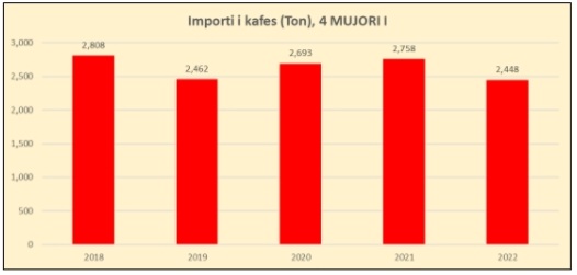 Sipas të dhënave të Ministrisë së Financave për periudhën janar-prill importi i kafes është 11% më pak se 2022.