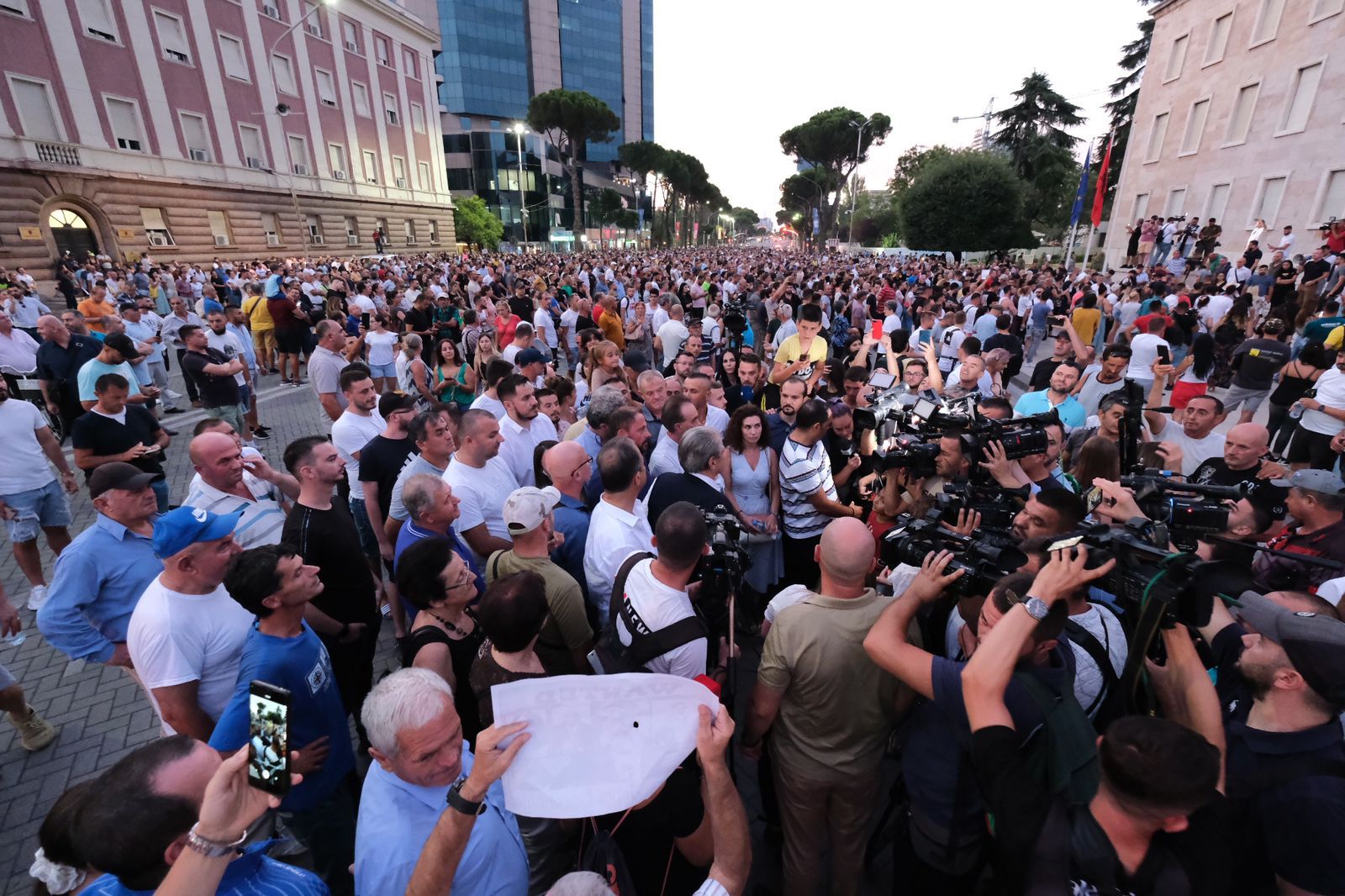 Në protestë u bashkua edhe politika ku dy drejtuesit kryesorë të opozitës, Sali Berisha dhe Ilir Meta ju bashkëngjitën qytetarëve të ndarë fillimisht.