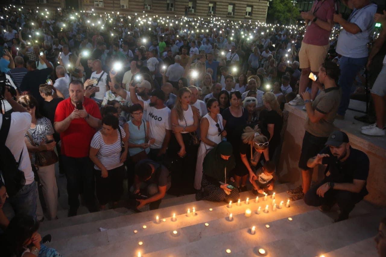 Përballë kryeministrisë ata qëndruan disa minuta ku dhe ndezën qirinj në shkallë të saj.