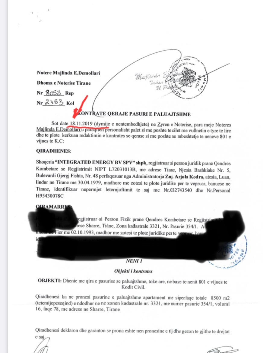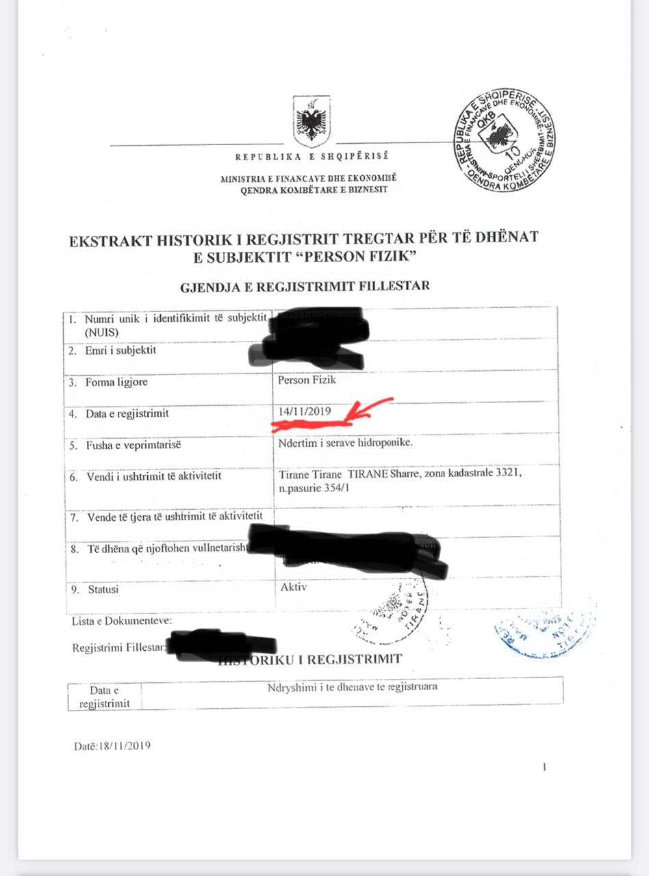Sipas dokumenteve, shoqëria është regjistruar në QKB më 24 nëntor 2019 dhe katër ditë më vonë, më 18 nëntor 2019 kompania ka firmosur dhënien me qira të një pasurie të paluajtshme ndërkohë që pasuria në fjalë ishte e inceneratorit të Sharrës.