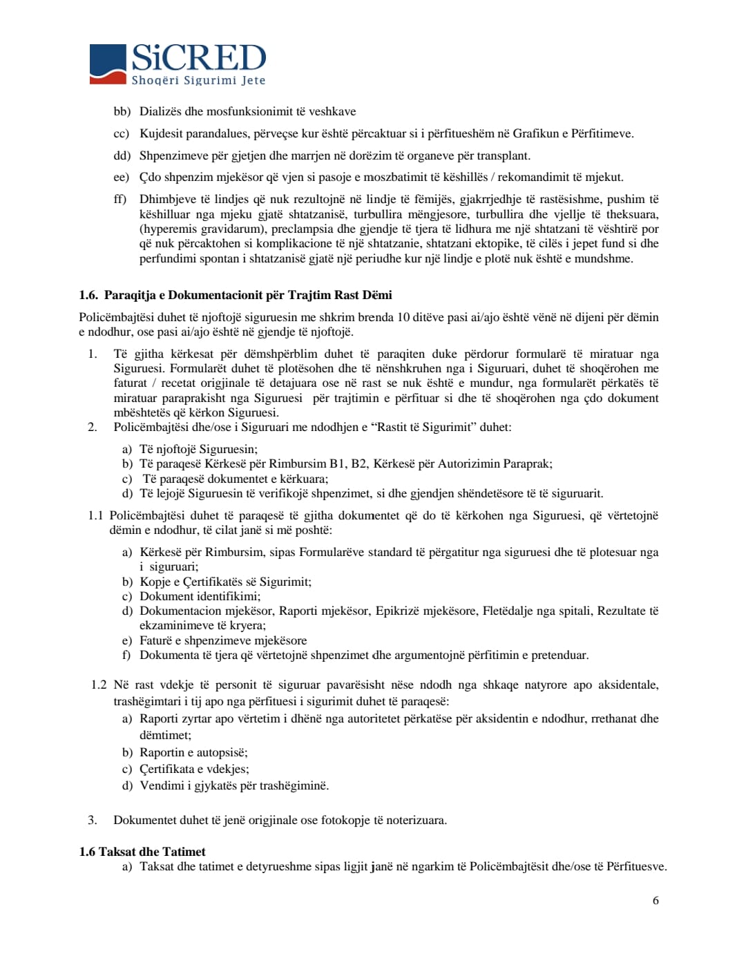 Në një kontratë standarde të sigurimit të jetës edhe shëndetit përfshihet :