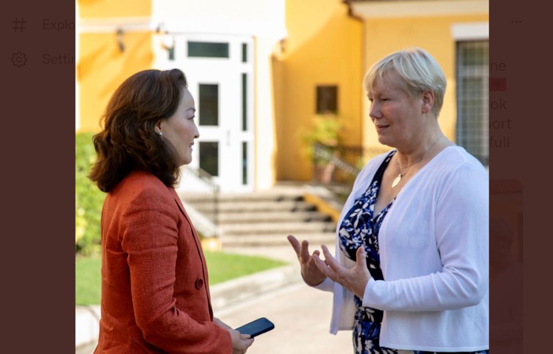 Në një postim në Twitter, Kim shkruan se është e lumtur që ka takuar ambasadoren e BE-së Hohmann e mezi pret të punojë ngushtë me ekipin e BE-së.