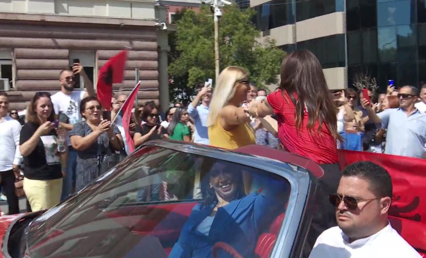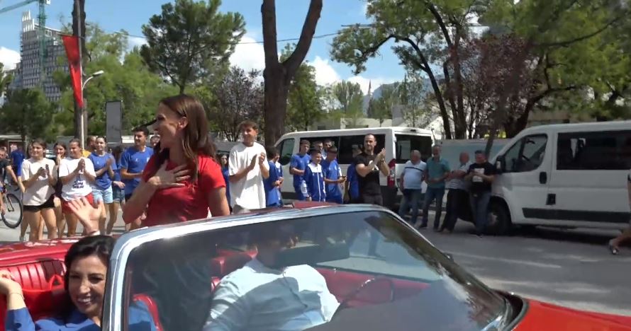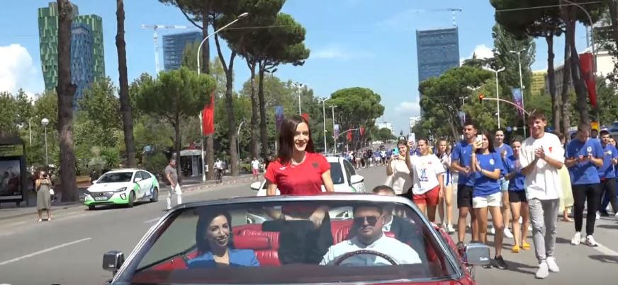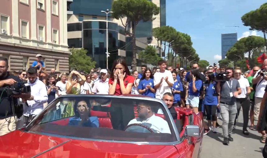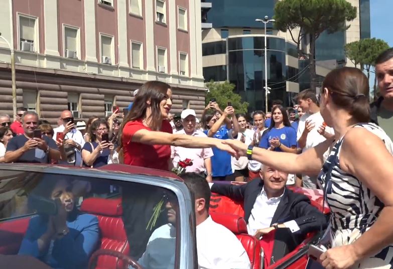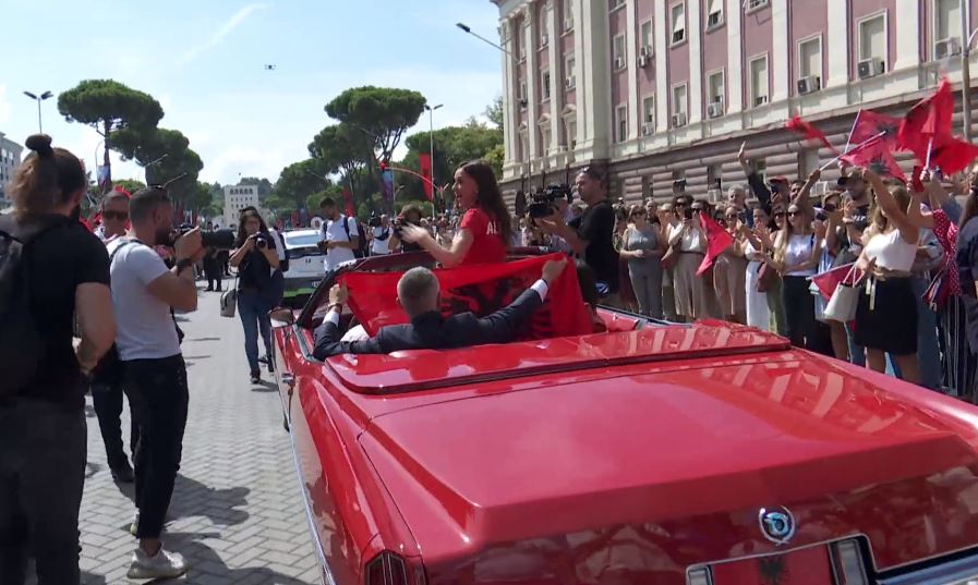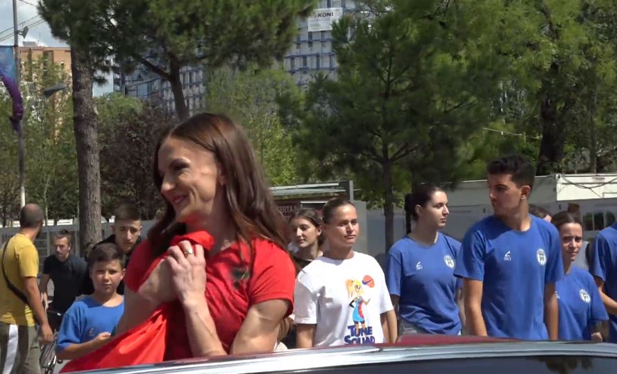 Qytetarët e pritën atë me duartrokitje dhe brohoritje, ndërsa Gega u afrua së bashku me trajnerin e saj në një mjet në ngjyrë të kuqe, me “Faleminderit!” të shkruar mbi flamurin e vendosur në pjesën e përparme dhe të pasme të makinës.
