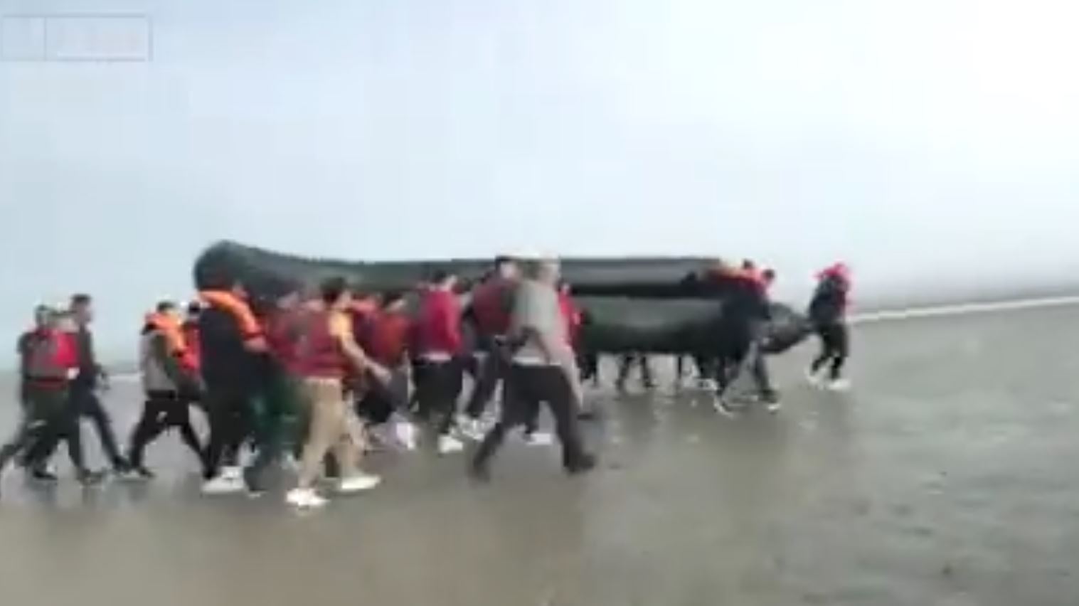 Policia franceze ka ndaluar një grup emigrantësh të paligjshëm që po përpiqeshin të niseshin drejt Anglisë me gomone. Siç duket në video, efektivët ndërhyjnë për të ndaluar gomonen që të niset duke e çarë atë e duke spërkatur disa prej emigrantëve.