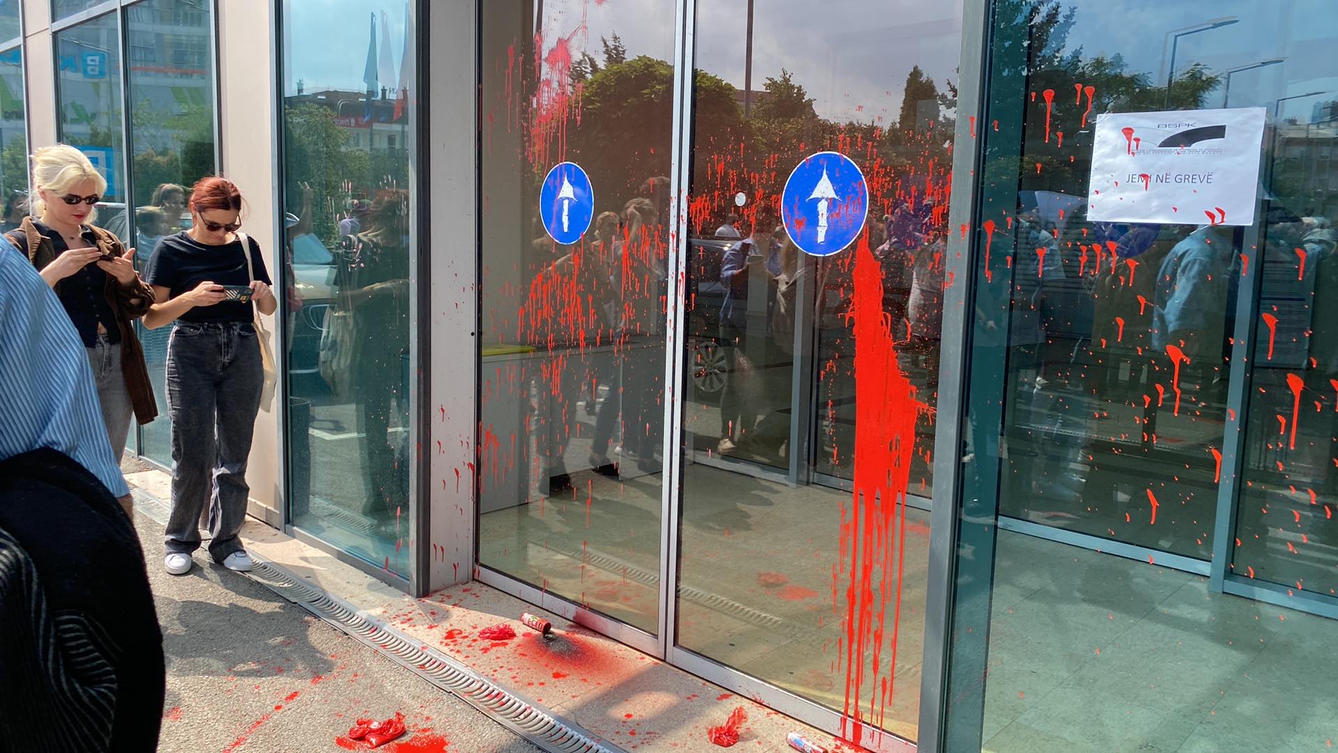 Protestuesit që kërkojnë të vihet drejtësi dhe që dhunuesit të marrin ndëshkimin e merituar, kanë hedhur bojë të kuqe në muret e Ministrisë së Drejtësisë.
