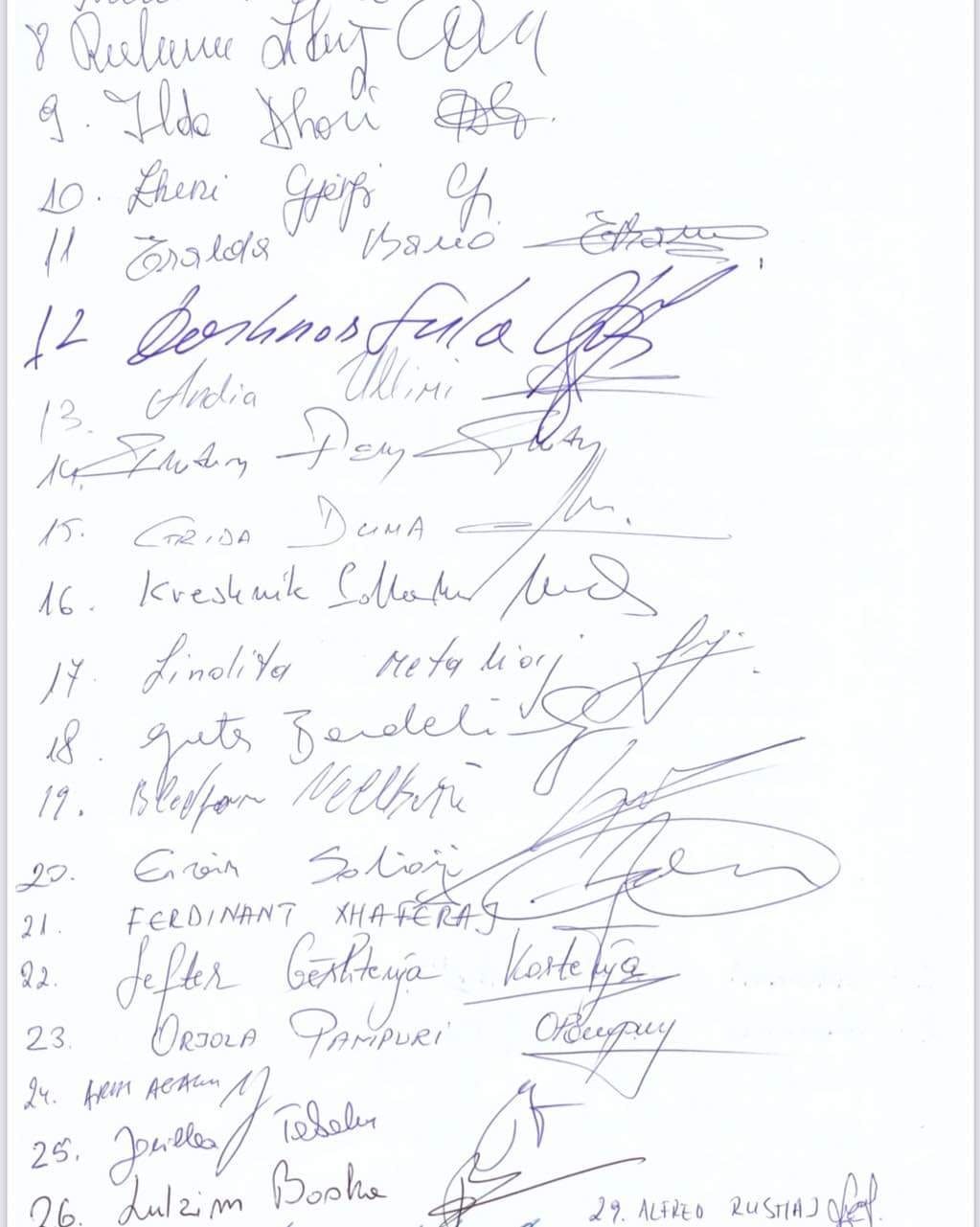 Dokumenti është firmosur nga 29 deputetë të PD-së të cilët pjesa më e madhe janë nga grupi mbështetës i Lulzim Bashës, me përjashtim të Alfred Rrushajt, Grida Dumës dhe Ervin Salianjit.