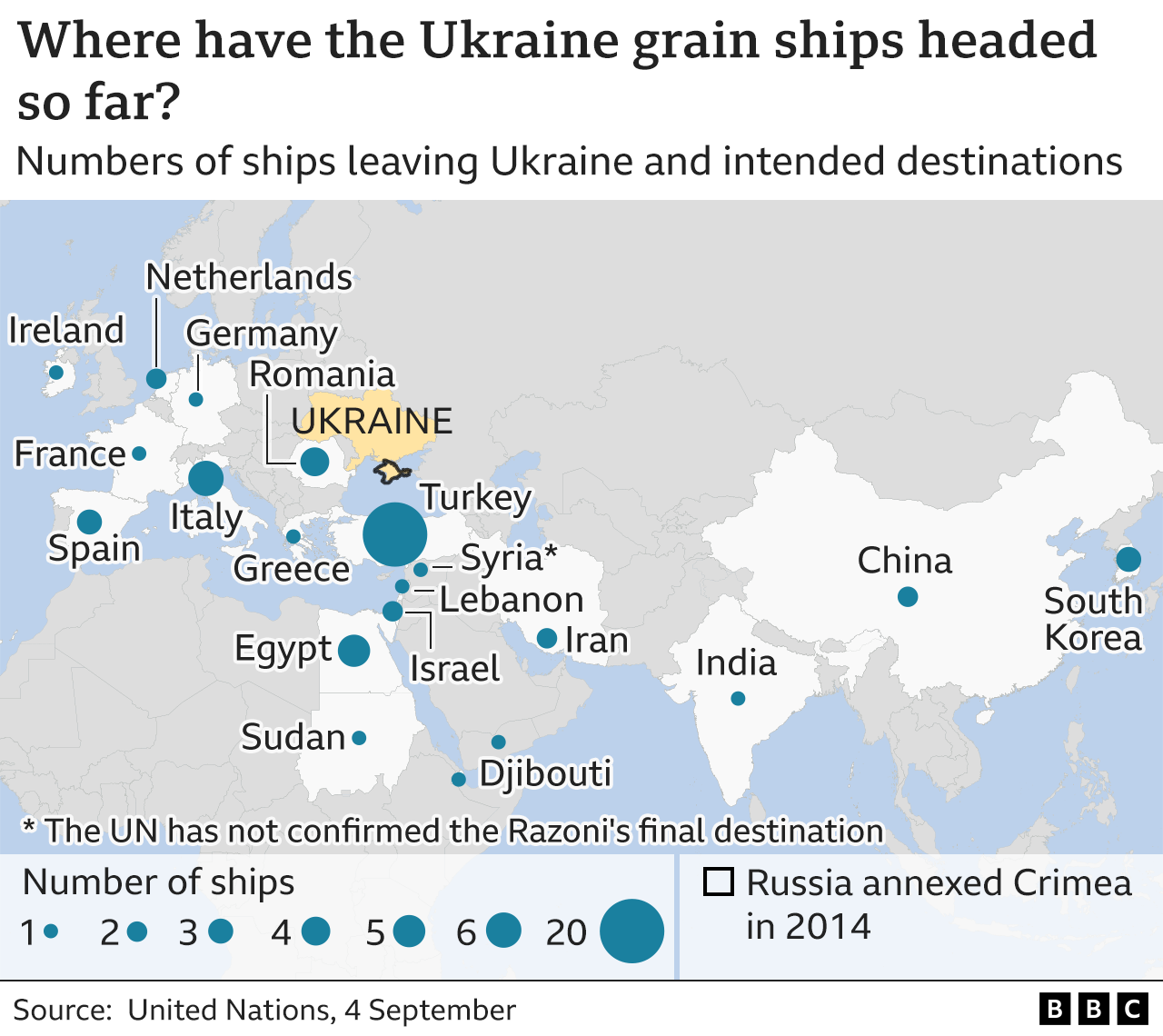 Për muaj të tërë portet detare të Ukrainës u bllokuan nga forcat ruse, por që kur eksportet rifilluan në fillim të gushtit, lideri rus pohoi se vetëm dy anije me grurë kishin shkuar në Afrikë – gjë që nuk është kështu. Ai tha se donte të diskutonte rishikimin e marrëveshjes, në vërejtjet e refuzuara nga Ukraina si të pabaza.