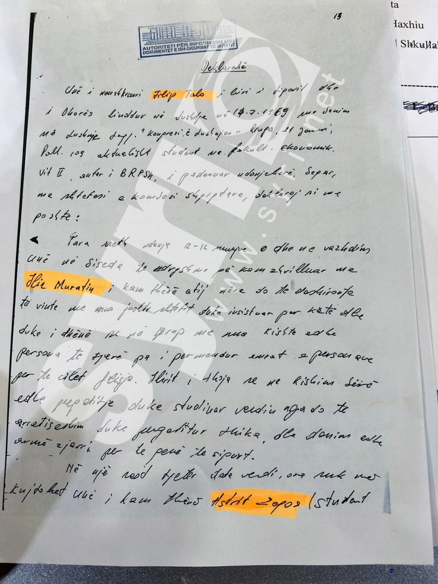 Pjesë nga deklarata e Filip Talos përpara hetuesve