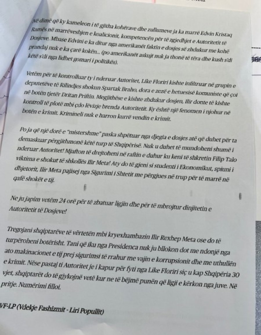 Kryetari i Partisë së Lirisë, Ilir Meta, ka publikuar email-in anonim dhe iu përgjigj edhe njëherë qeverisë e cila e akuzon si bashkwpunwtor tw ish-sigurimit tw shtetit.