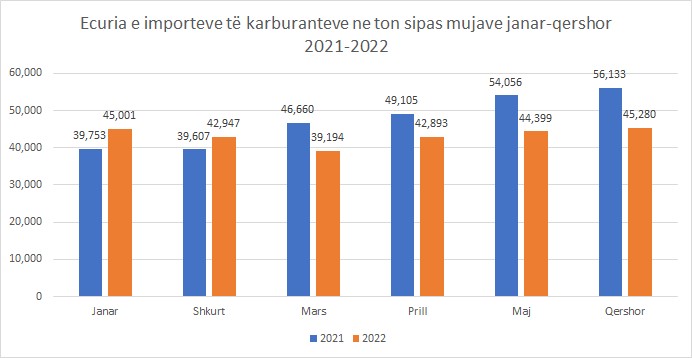 Në grupin “Tregti me pakicë hidrokarbure në njësi tregtare të specializuara“, volumi i shitjeve, i përshtatur sezonalisht, është rritur me 1.2 %, kundrejt tremujorit të parë 2022.