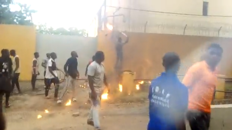 Autoritetet franceze këshilluan qytetarët të qëndrojnë në shtëpi, pasi turma njerëzish të zemëruar u mblodhën jashtë rrethimit të Ambasadës Franceze pasditen e së shtunës. Sipas videove të shpërndara në mediat sociale, protestuesit u përpoqën të sulmonin kompleksin diplomatik, e qëlluan me gurë dhe vunë zjarr në hyrje dhe rreth perimetrit të objektit.