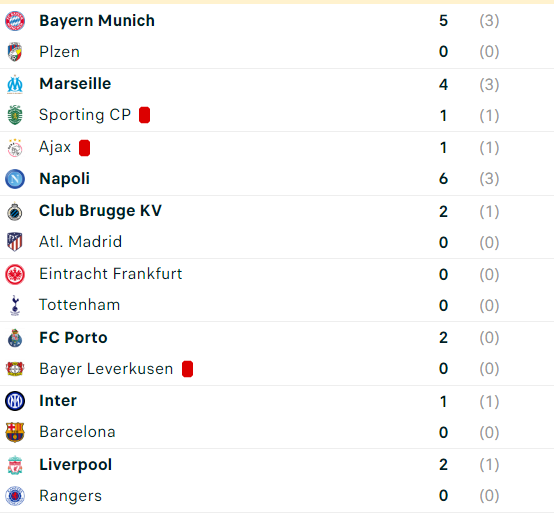 Në sfidat e tjera Livepuli fitoi 2-0 ndaj Rangers. Befasia e raundit të tretë ka qenë Club Brugge i cili mundi Atletiko Madrid.