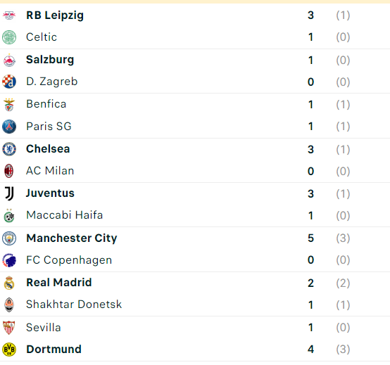 Në sfidat e tjera, Real Madrid fitoi me Shakhtar Donetsk ndërsa Man.City shkatërroi Copenhagen 5-0.