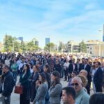 Protesta e pedagogëve po zhvillohet ashtu siç ishte lajmëruar para Universitetit Politenik.