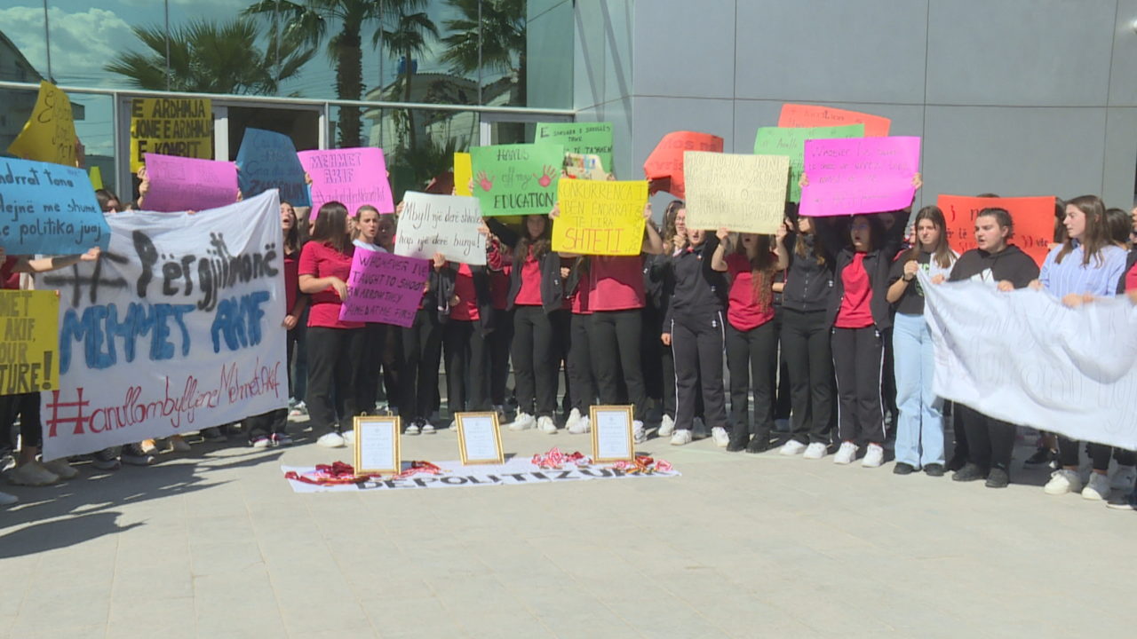 Disa ditë pas mbylljes, gjimnazistët e kolegjit “Mehmet Akif” protestuan kundër vendimit të qeverisë për mbylljen e këtij institucioni arsimor. Ata e konsiderojnë të pajustifikueshëm këtë vendim.