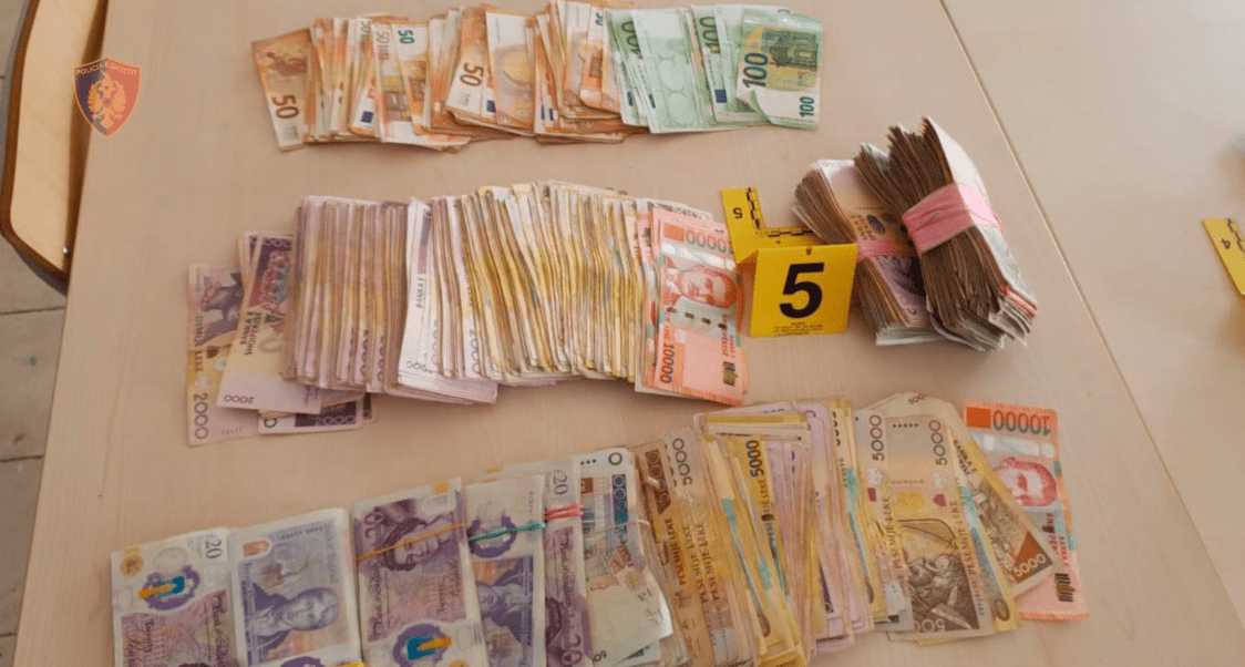 Gjithashtu, në banesën e shtetasit A. B. janë gjetur dhe sekuestruar edhe 3.760.000 lekë të rinj, 5000 paund dhe 8950 euro, të cilat dyshohet se ky shtetas i ka përfituar nga veprimtaria kriminale në fushën e narkotikëve dhe të trafikimit të armëve.