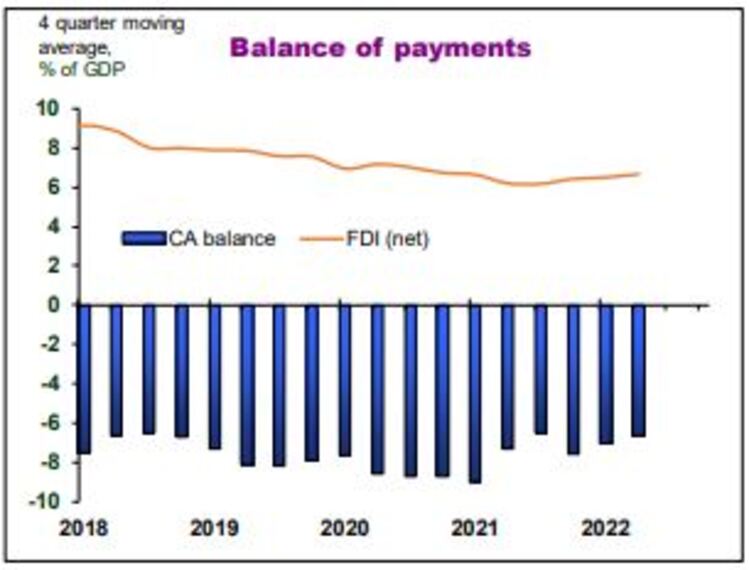 Në të kundërt, rritja ekonomike në Mal të Zi u përshpejtua ndjeshëm në tremujorin e dytë të 2022 në 12.7% në vit, nga 7.1% në tremujorin e mëparshëm. Ai u nxit kryesisht nga konsumi privat, si rrjedhojë e rritjes së pagave neto reale pas heqjes së kontributeve shëndetësore dhe rritjes së pagës minimale si dhe nxitjes së mëtejshme të punësimit, që u ndikua nga rimëkëmbja e turizmit.