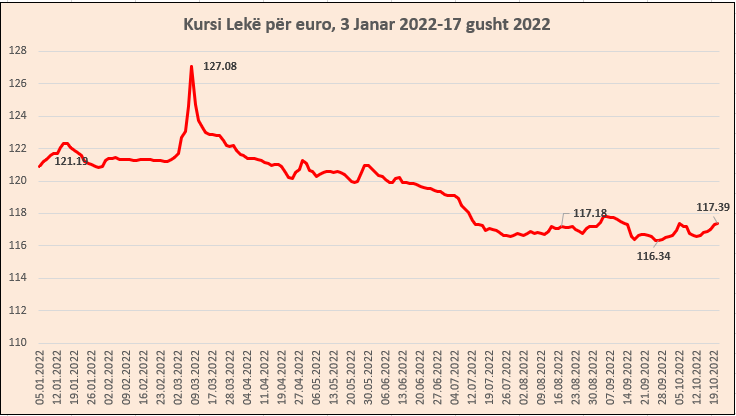 Prej afërsisht një jave, euro po rifiton gradualisht terren në kursin e këmbimit me lekun. Sipas kursit zyrtar të Bankës së Shqipërisë, euro u këmbye të enjten me 117.39 lekë, duke shënuar nivelin më të lartë që prej datës 12 shtator.