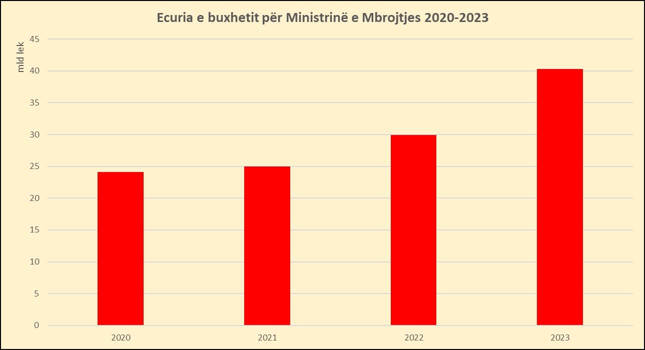 Sipas dhënave nga projektbuxheti 2023, fondet totale për Ministrinë e Mbrojtjes janë rritur me rreth 10 miliardë lekë (87 milionë euro) ose me rreth 35% më shumë se në këtë vit. Rritjen më të madhe e ka programi “Forcat e Luftës”, të cilat marrin 62 milionë euro financime shtesë këtë vit.