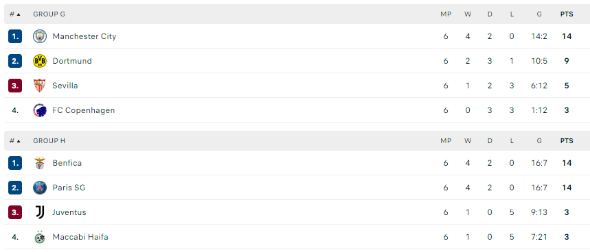 Benfica triumfoi 6:1 ndaj Maccabi Haifas, kurse Man City triumfoi 3:1 ndaj Sevillas.