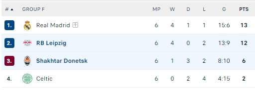 Për në fazën me eliminim direkt u kualifikuan Real Madrid dhe Leipzig.