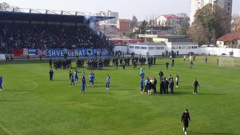 Forcat e shumta të policisë kanë ndërhyrë për të qetësuar situatën dhe ndeshja u ndërpre.