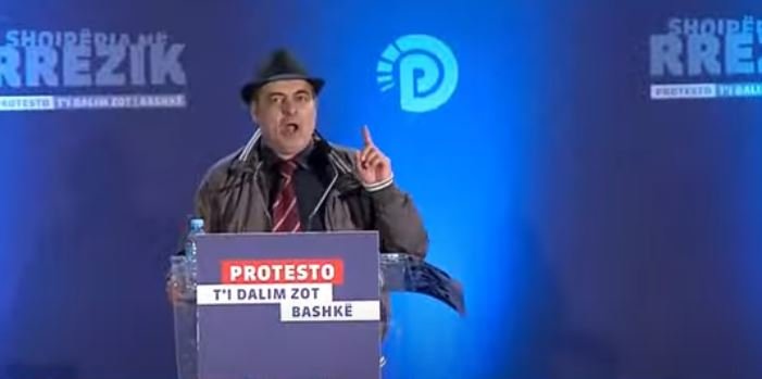 Poshtë George Soros! Poshtë George Soros! Poshtë George Soros! A e dini ku është Rama sot? Në cilën fole është fshehur? Në folenë e qyqes së sorosit në Paris bashkë me Aleksandër Sorosin, duke bërë planin që të na dëbojë edhe ne që kemi mbetur pa dëbuar. Por këtë tani e dinë dhe socialistët, e dinë dhe patronazhistët. Dhe e dinë çfarë po thonë ata tani në këtë moment? Shporreni qelbësirën sepse edhe ata e dinë që janë viktima si të gjithë ne. Dua t’ju kujtoj sot…