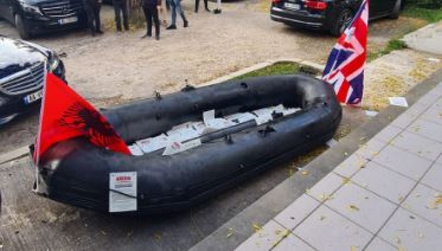 Protestuesit kanë gjetur një tjetër mënyrë për të shprehur zemërimin e tyre. Ata kanë sjellë edhe një gomone mbi të cilën ndodhet flamuri shqiptar përkrah atij të Mbretërisë së Bashkuar. Po sot shqiptarët kanë protestuar edhe në Mbretërinë e Bashkuar, pasi janë ndier të fyer nga Sekretarja e Brendshme e cila i ka konsideruar si “pushtues”.