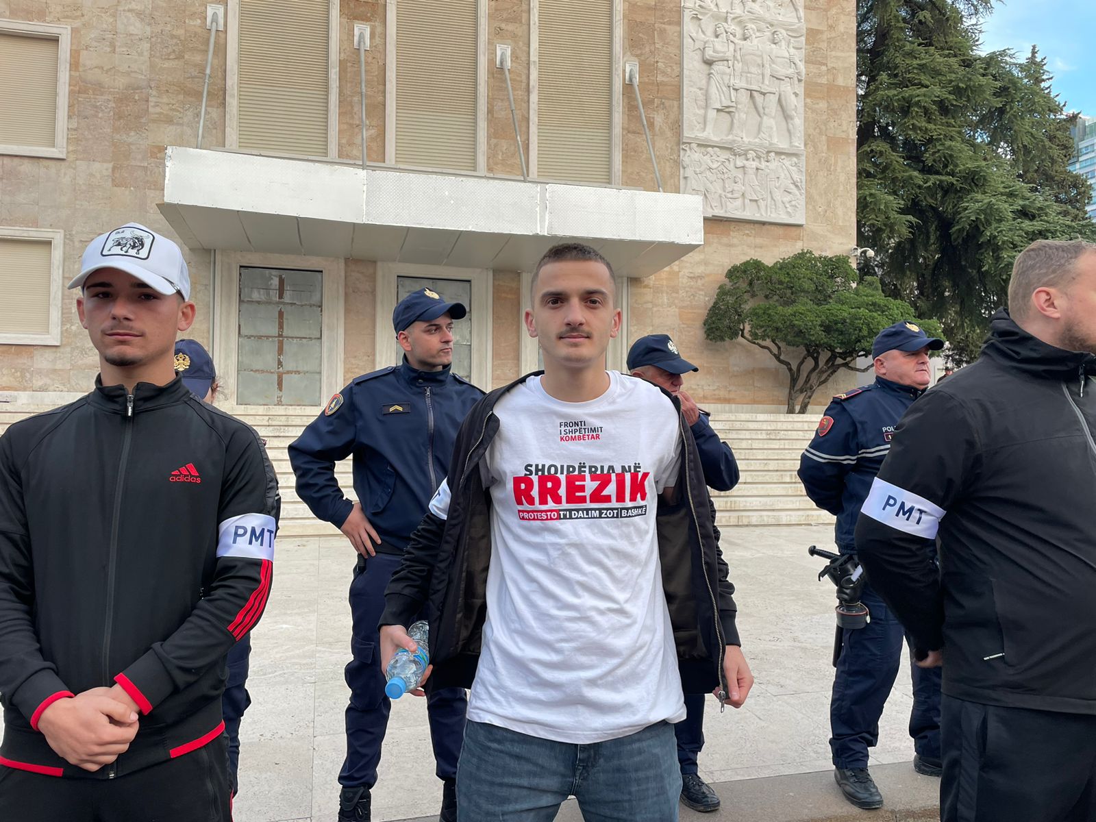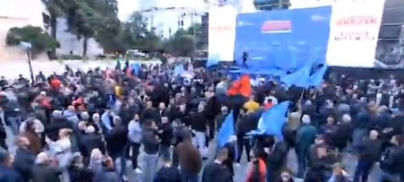 Ka nisur protesta e opozitës përpara godinës së Kryeministrisë. Në sfond dëgjohet muzikë, teksa qytetarët mbajnë pankarta të shumta në duar para kryeministrisë.