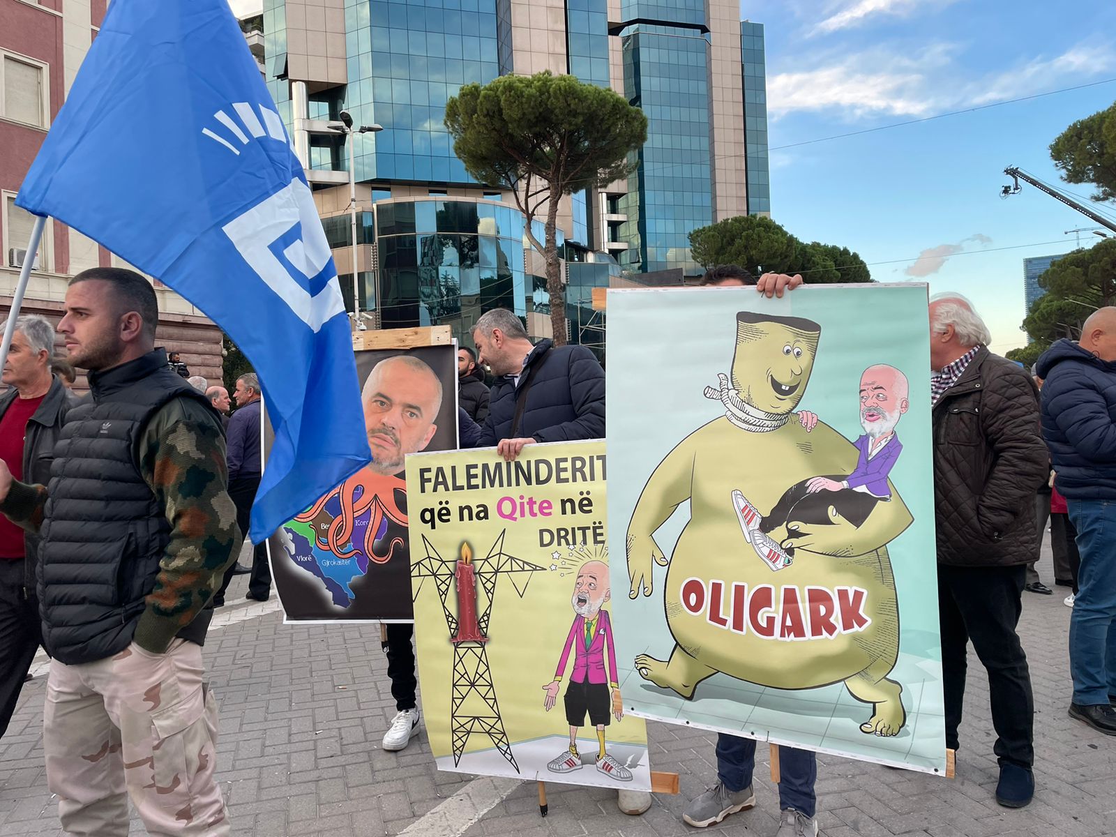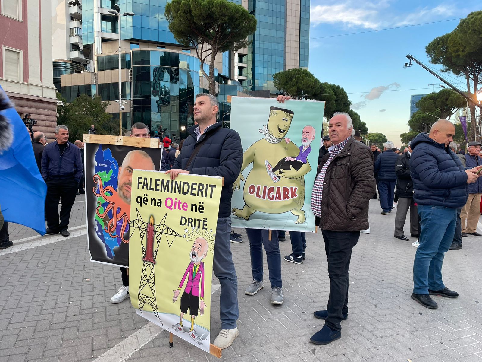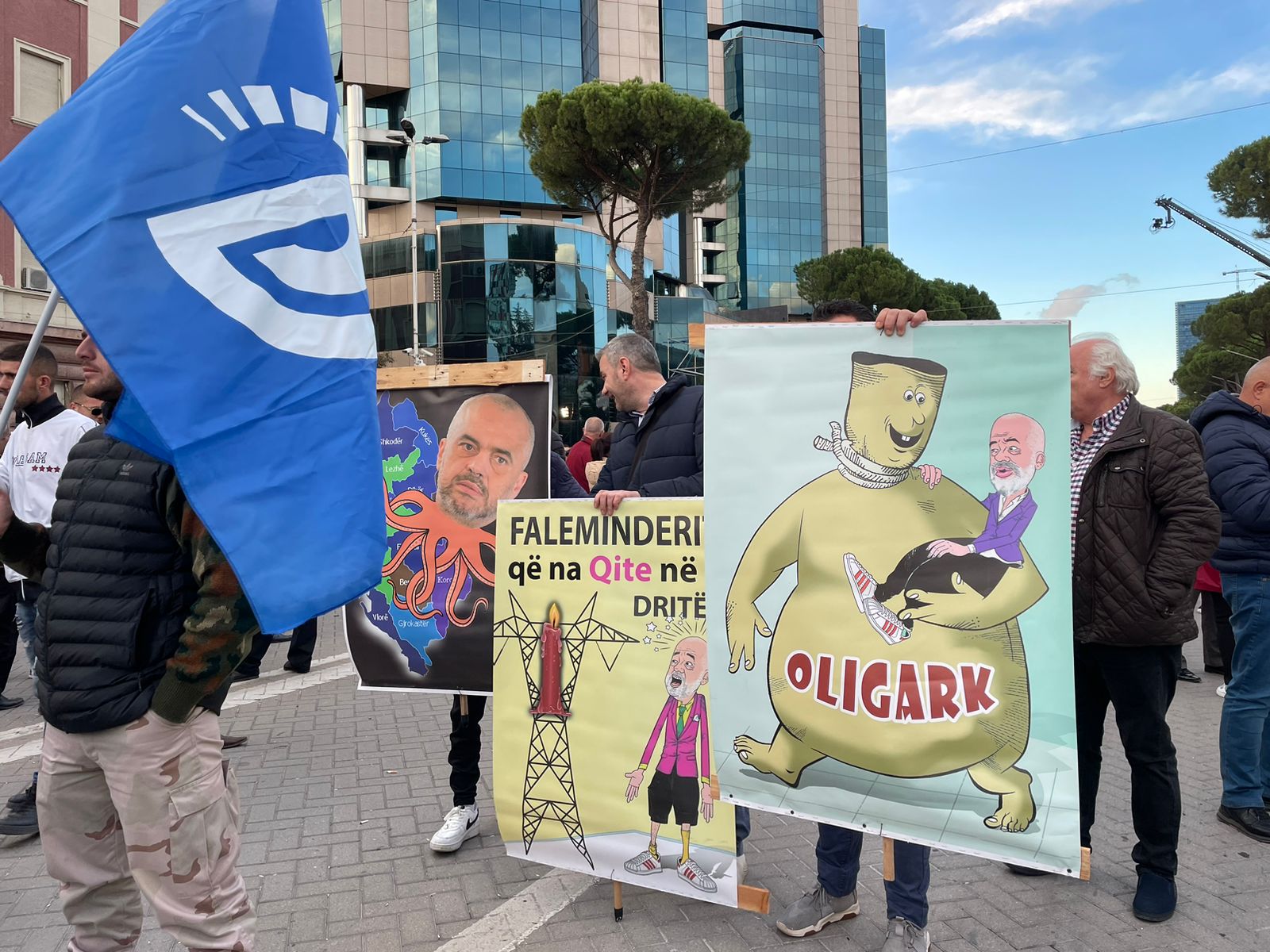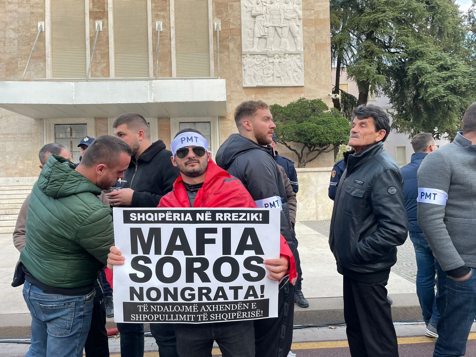 “Mafia Soros non-grata”, “Faleminderit që na qite në dritë”, “Edi kush i mbylli kopshtet” – lexojnë disa prej pankartave.