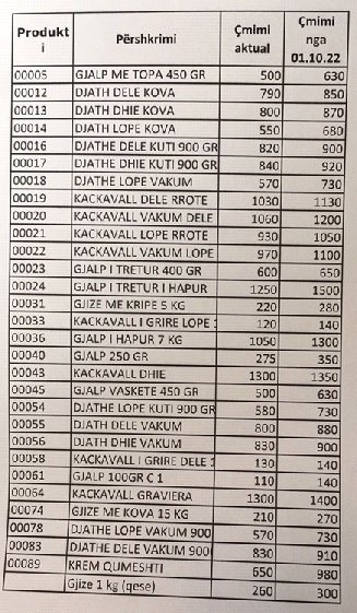 Në tërësi produktet e bulmetit sipas listës së re në supermarkete për produktet e një prej kompanive më të mëdha në treg janë shtrenjtuar sërish nga 9 deri 30%.