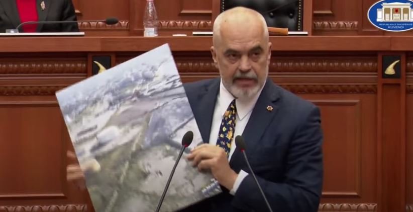 Teksa kryeministri Edi Rama ishte duke folur në Kuvend për projektin e Portit të Durrësit tregoi dhe disa foto ku tregonte zona ku ka mbetje urbane dhe sulmonte opozitën duke e ka krahasuar me kanalet e ujërave të zeza.